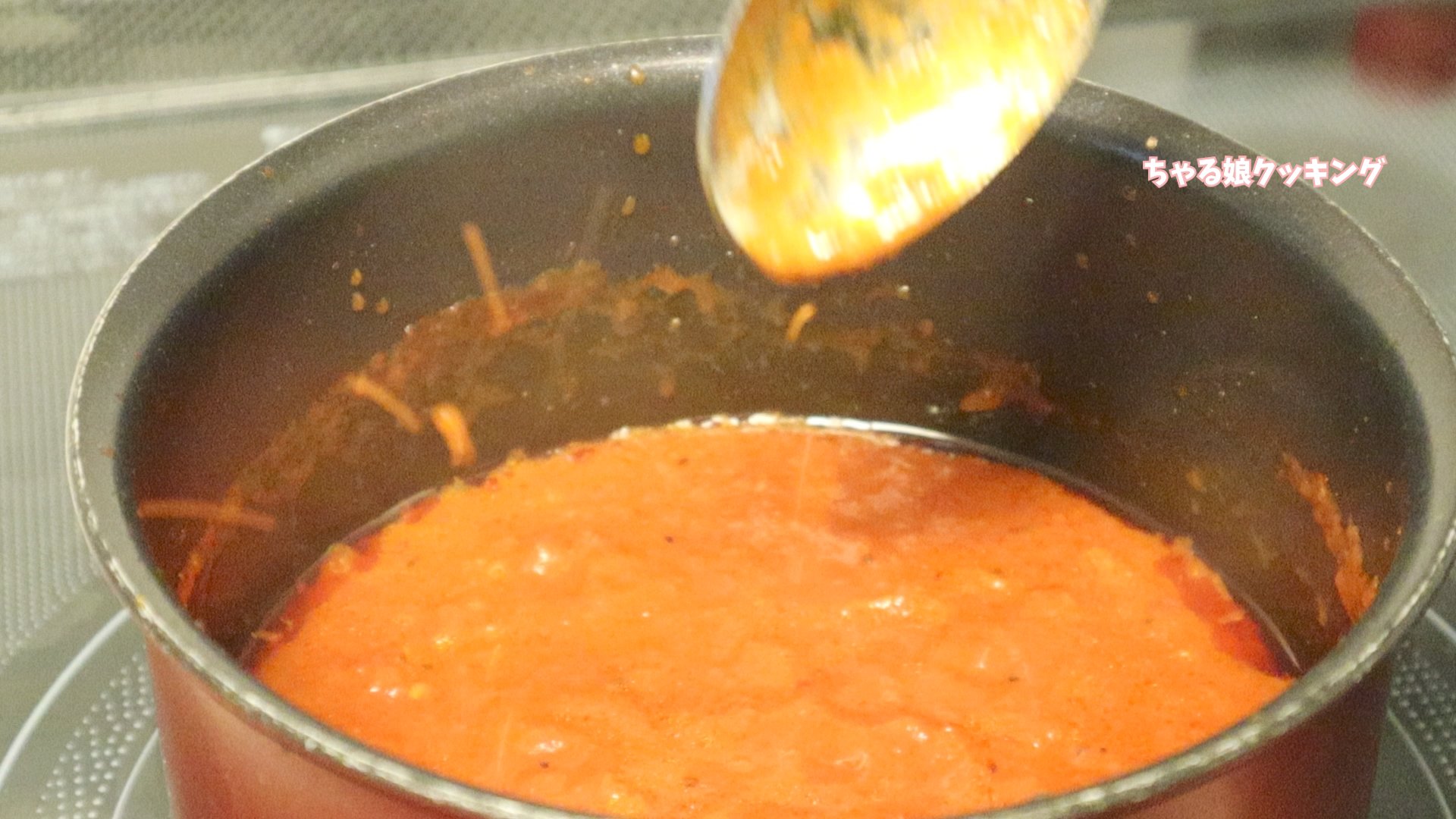 あ!トマトソースは跳ねるので注意です。